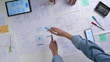 UX/UI designers discussing and brainstorming on wireframes for a website and mobile app prototype, surrounded by sketches of user flow and design tools, in the concept of website and mobile application design concept. - 4K Stockvideo