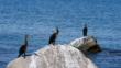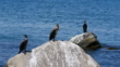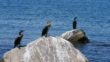 Double-crested Cormorant (Phalacrocorax auritus) on a rock in the sea. Handheld video.