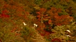 Pan down from about a dozen tundra swans (Cygnus columbianus) in flight over Oyama Shimo-ike Pond to numerous swans at rest on the pond; Autumn leaves on Mt. Takadate visible in the background; Oyama Shimo-ike is a manmade pond (covering approximately 24 ha) situated west of the city of Tsuruoka, It was created about 400 years ago to provide irrigation water for farming, It is an important habitat for almost 200 species of birds, and is listed under the Ramsar Convention, Every year, some 1,000 to 3,000 tundra swans (Cygnus columbianus) winter here, The tundra swan, a member of the Anatidae family of ducks, geese, and swans, is a migratory bird that grows to a height of about 1,2 m, It breeds in cold parts of Siberia and elsewhere, and winters in temperate lakes and marshes, including those in Japan.