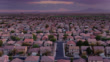 Aerial establishing shot of suburban tract homes in Maricopa, Arizona at sunset.