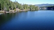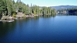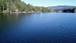 A drone low flies over the water of Twin Lakes in Rathdrum Idaho - 4K Stockvideo