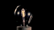Slow motion close up handheld shot of a lightbulb explosion on a black background. Shot in Slovenia.