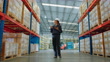 Female warehouse worker Inspector Checking check merchandise package Inventory. Storehouse Logistics and Delivery Center - 4K Stockvideo