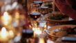 Fine dining. gourmet dinner. Guests enjoying in wine and dinner in restaurant. Close up of a dinner at restaurant. Dinner on decorated table. wedding ceremony. - 4K Stockvideo