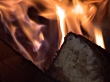 Detail shot form fire in an old fashioned metal oven. Paper, wood and coal burning merrily.