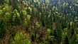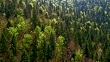Aerial shot of a forest on a sunny day. Shot in Slovenia.