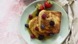 French toast flavored with fresh berry fruits and drizzled with maple syrup
