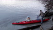 Friends prepare double ocean kayak launching - 4K Stockvideo