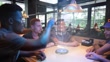 Friends using augmented reality device to ordering on a restaurant - 4K Stockvideo