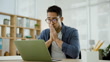 Frustrated, confused and businessman at laptop with email, spam or 404 on crypto trading business website. Stress, online currency problem and man in office working on crisis in stock market crash. - 4K Stockvideo