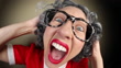 A humorous HD fisheye video clip of an old lady screaming while covering her ears.