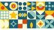 Geometric pattern loop. Circles, squares, triangles animation. Modernist abstract seamless background. Bauhaus design style.