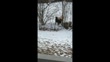 A golden retriever in Auburn Hills, Michigan, made sure his black labrador friend knew he was ready to play, barking from the snow-covered yard belonging to his neighbor. This footage, shared to https://www.tiktok.com/@colleensmith419/video/7471732902368234795">TikTok by Colleen Smith, shows the golden retriever calling out to his playmate, before the camera pans to the black lab named Willie as he excitedly descends the stairs to be reunited with his friend. "We used to think he was just barking to go back inside until we realized he was barking for Willie," Smith captioned the video. The duo were then seen lapping up each other's company as they played in the snowy yard. (Footage by Colleen Smith/Storyful via Getty Images UGC)