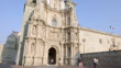 Extreme wide real time shot of group of tourists admiring Basilica de la Soledad in Oaxaca City while sightseeing during vacation