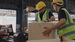 Group of warehouseworkers in a warehouse getting products ready for customers. - 4K Stockvideo