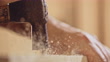 Slow motion close up locked down shot of a hammer hitting a nail and running it into the wood. Shot in Slovenia.