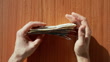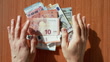 Collecting Euro banknotes from the table