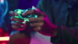 4K video footage of a Young African handsome pro Gamer playing an online video game and having a live stream.