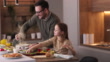 Happy single father and daughter cooking lunch in the kitchen. - 4K Stockvideo