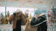 Happy Young Female Friends Adjusting Trendy Clothes and Blond Hair in Shopping Mall During Christmas - 4K Stockvideo