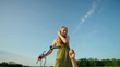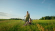 Happy Young Female Friends With Bicycle Pointing Away While Relaxing on Grassy Meadow Under Blue Sky on Sunny Day - 4K Stockvideo