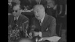 VS Head of the American Federation of Musicians James Petrillo sitting at table testifying before House Committee on Education and Labor, SOT saying that his union is trying to protect salaries of musicians in television, that future of musicians in television is uncertain and that television industry will not offer any guarantees
