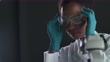 Headshot of female scientist putting on protective eyewear - 4K Stockvideo