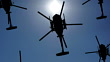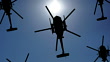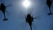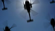 Rows of helicopters flying in the sky. Seamlessly looped.