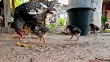 Video of a hen and chicken on soil floor dolly shot. Shot by smart phone. 4K