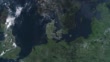 Highlighted Denmark map, zooming in from the space through a 4K photo real animated globe, with a panoramic view consisting of Asia, Africa and Europe. Epic spinning world animation, Realistic planet earth, highlight, satellite, aerial - 4K Stockvideo