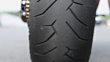 Germany, Hockenheim - Juni 26, 2014:Close up shot of a backwheel from a starting motorcycle at the racetrack in Hockenheim, Germany. Filmed from behind with a transition to blur at the end.