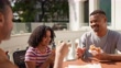 Homosexual family eating hamburger outdoors - 4K Stockvideo