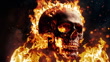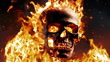 A human skull surrounded by flames. The skull is in the center of the frame, and the fire completely covers it.