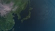 Japan map, zooming in from the space through a 4K photo real animated globe, with a panoramic view consisting of Asia, Africa and Eurasia. Epic spinning world animation, Realistic planet earth, highlight, satellite, aerial,