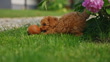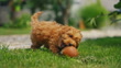 Get ready for an irresistibly adorable sight in this playful video. Watch as a cute Toy Poodle engages in a game of pure joy, chasing and frolicking with a baseball ball on the lush green grass of a sun-drenched yard. Its infectious energy and enthusiasm bring a smile to your face as it bounces and pounces, embodying the essence of summer fun. Experience the carefree moments and unbridled happiness as this lovable Poodle finds delight in simple pleasures. Let this heartwarming scene transport you to a world of laughter and playfulness, where summer memories are made.