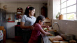 Latin American mother teaching her daughter to cook dinner at home - lifestyle concepts