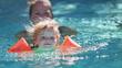 A little 3 year old girl learning to swim with water wings