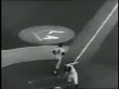 Los Angeles Dodgers pitcher Sandy Koufax pitches the ball and Minnesota Twins batter Bob Allison strikes out during game seven of the World Series.