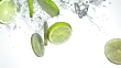 HD1080p: Super Slow Motion shot of ice and slices of lime splashing into water. Recorded at 1050 fps.