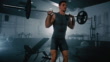 Male bodybuilder doing barbell squats at gym - 4K Stockvideo