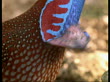 Male Temminck's tragopan pheasant displays and chases female round tree in forest, India (Core Number: NBSK467R)