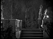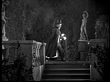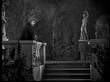 1925 MS B/W Man wearing cape and top hat walking in garden at night - Stockvideo