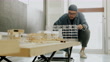 Master degree student present's the architectural models to professor with passion - 4K Stockvideo