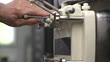 CU TD Mature man making large vanilla cone / Stowe, Vermont, USA - HD Stockvideo
