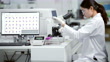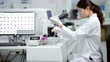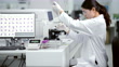 Medical technicians are looking at the microscope Stay inside the hospital laboratory.