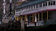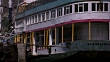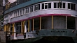 MEDIUM ANGLE OF LARGE STEAMBOAT OR STEAMSHIP CALLED S.S. CATALINA DOCKED IN HARBOR IN ENSENADA, MEXICO. PAN LEFT TO FRONT OF ANOTHER BOAT. SEE TIRES ON SIDE OF TWO STORY BOAT. SEE MAN IN DOORWAY OF BOAT. COULD BE FERRY.