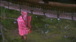 Medium shot reflection on water's surface of courtesan walking along path / Hikone, Japan - HD Stockvideo