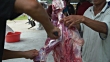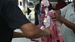 PAHANG, MALAYSIA - 26 AUGUST 2018 : Men cutting meat that to be distributed to the poor in conjunction with the Hajj at mosque near Kuantan,Pahang.