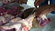 PAHANG, MALAYSIA - 26 AUGUST 2018 : Men cutting meat that to be distributed to the poor in conjunction with the Hajj at mosque near Kuantan,Pahang.