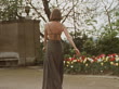 A model walks through a park wearing a green halter neck dress designed by Mary Quant. 1972. (Core Number: ANB7930P)